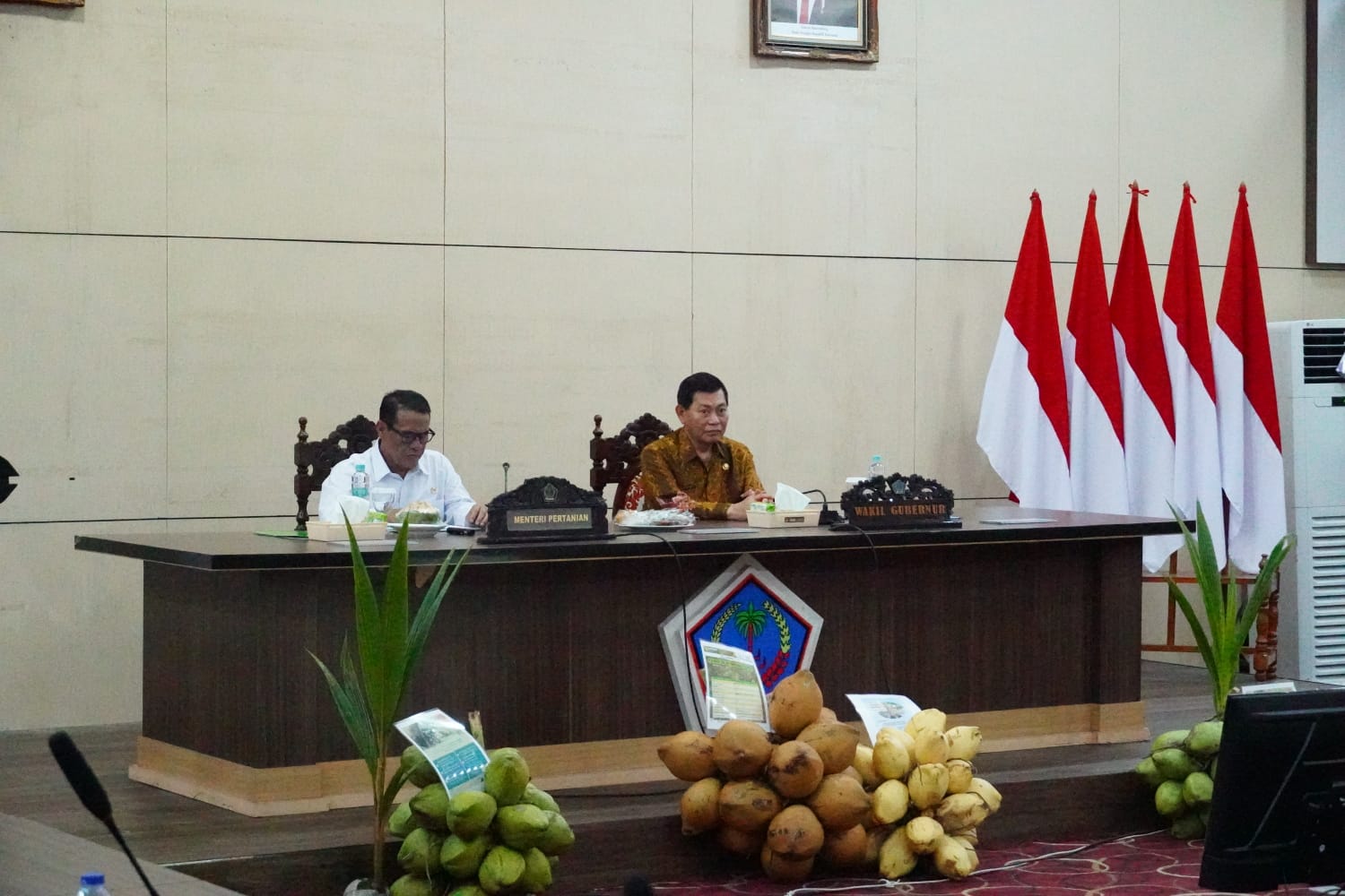 Didampingi Wakil Gubernur Sulut Victor Mailangkay, Menteri Pertanian membahas soal hilirisasi perkebunan di Manado.