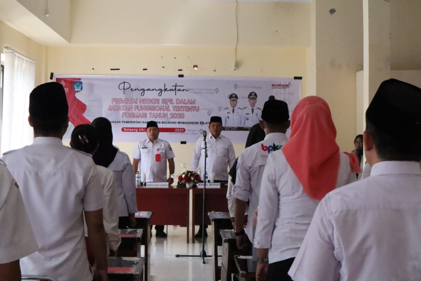 Matapena.news, Bolsel – Bertempat di Lantai II kantor Badan Kepegawaian dan Pengembangan Sumber Daya Manusia (BKPSDM), Kawasan Perkantoran di Panango, Desa Tabilaa, Kecamatan Bolaang Uki, Rabu (22/2/2023), Wakil bupati (Wabup) Bolaang Mongondow Selatan (Bolsel) Deddy Abdul Hamid, mengukuhkan 24 Aparatur Sipil Negara (ASN) dalam jabatan fungsional, angkatan 2022.