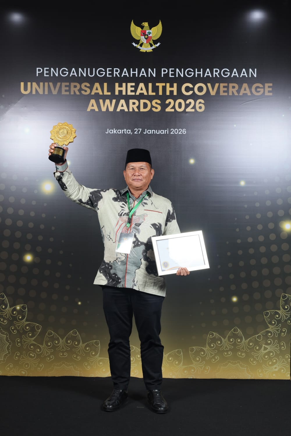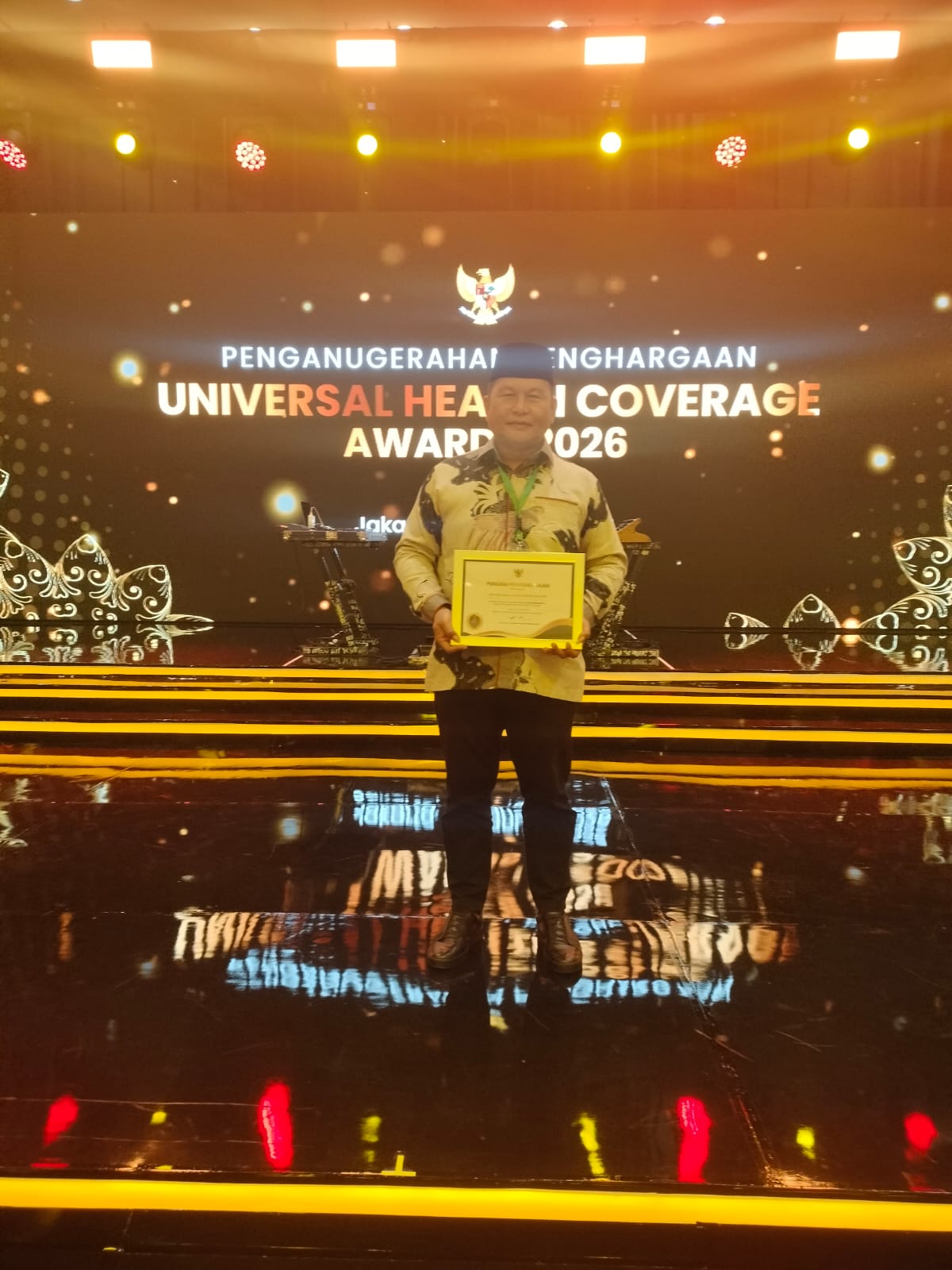 Penghargaan tersebut diterima oleh Wakil Bupati Bolsel, Deddy Abdul Hamid, pada kegiatan Deklarasi dan Pencanangan UHC yang diselenggarakan oleh BPJS Kesehatan di Jakarta International Expo (JIEXPO) Kemayoran, Selasa (27/1/2026).