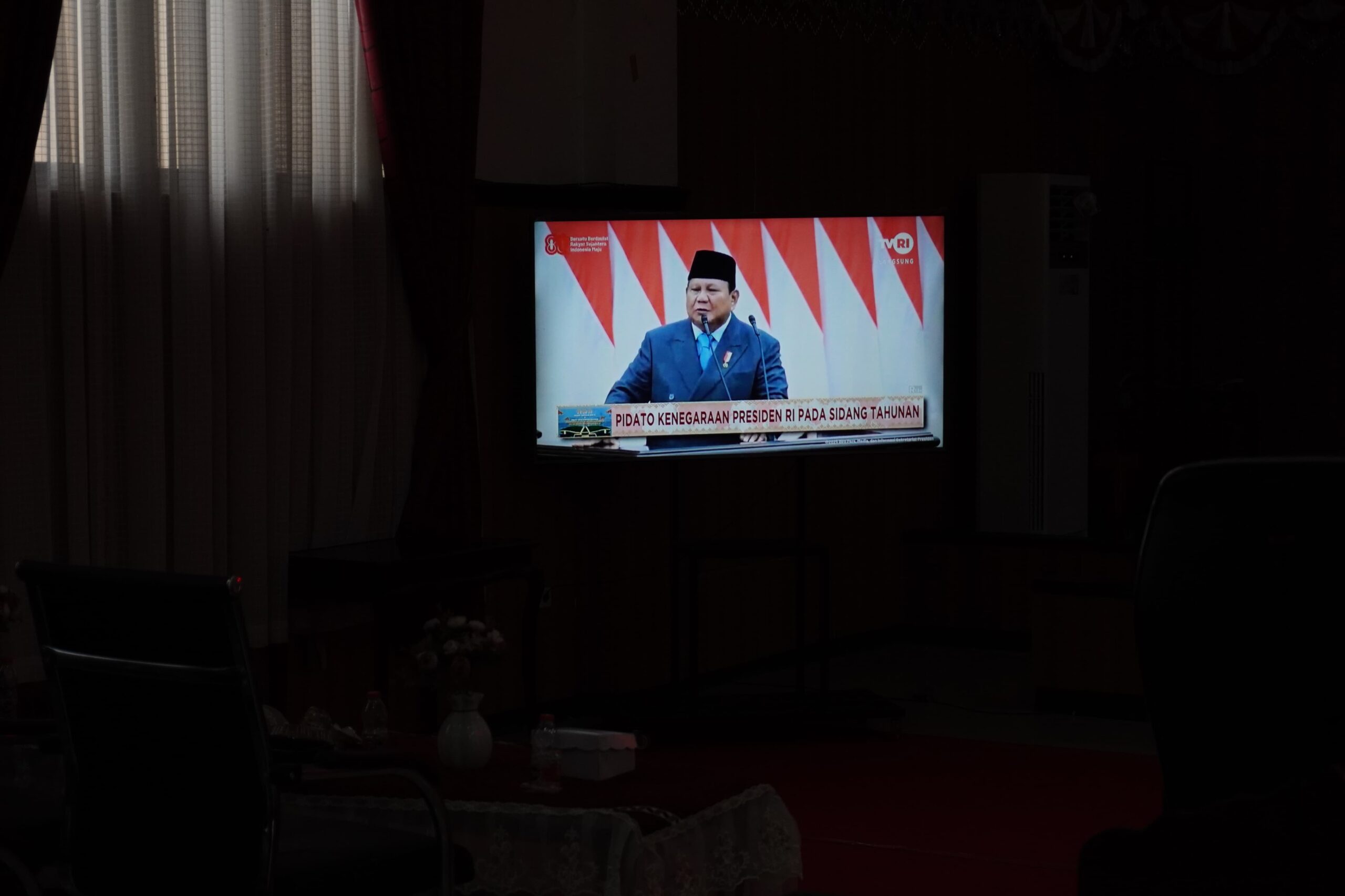 Dalam tayangan live streaming, di ruang Paripuna DPRD Bolsel, pidato kenegaraan didengarkan dalam sidang tahunan MPR dan sidang bersama DPR dan DPD.